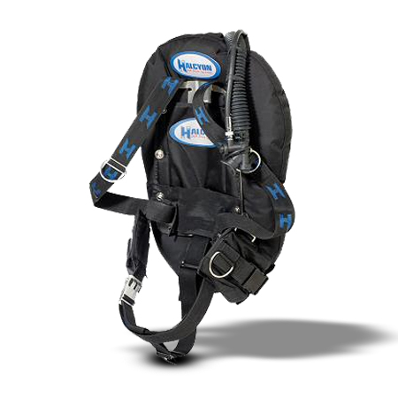 Halcyon Eclipse בנוי מכנפי אקליפס, המורכבות על לוח גב מפלדת אלחלד או מאלומיניום ומרתמה בודדת אשר אוחזת בצולל בצורה מושלמת, ללא אבזמי שחרור מהיר. המעטפת החיצונית עשויה מניילון בליסטי 1680 דנייר. לתוך המעטפת מוכנסת פנימית מאותו חומר בלתי ניתן לניקוב בעובי 400 דנייר. לכנפיים פרופיל ארוך וצר, התומך במיכל בודד לאורך כל גופו של הצולל, מוריד את מקדם החיכוך במים ומקטין את המאמץ הנדרש מן הצולל. הרתמה עם יכולות ההתאמה הבלתי נדלות חוסכת מן הצולל את התסכול של העדר שליטה מדויקת כמו במאזנים קלאסיים. כתוצאה מכל זה, הצלילה מהנה יותר!